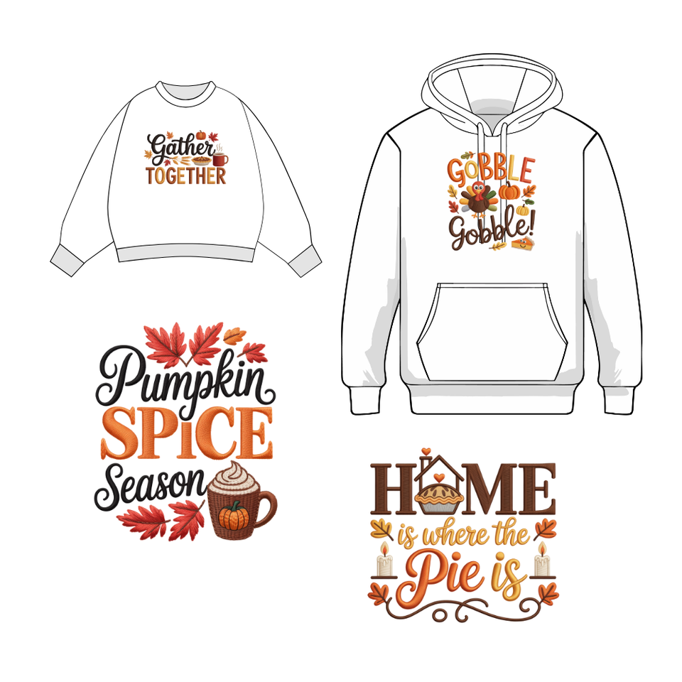 Custom DTF Embroidery Heat Transfer Thanksgiving for T-Shirts Hoodies Holiday Event Shirts Durable Vibrant Long-Lasting Prints