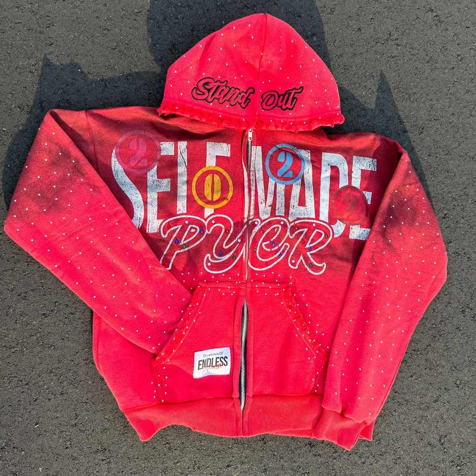 Custom DTG Acid Hoodies Men Oem Thick Cotton Distressed Vintage Washed 400G Heavyweight Rhinestone Hoodie