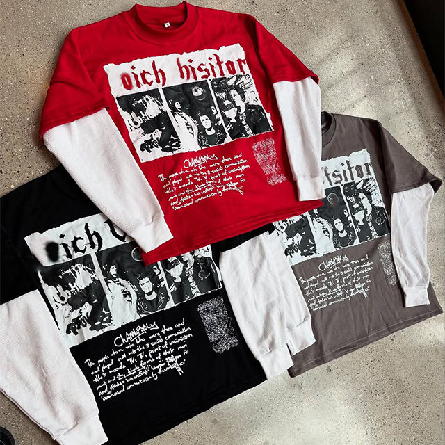 Custom DTG Screen Printing Long Sleeve Cotton Thermal T-Shirt for Men Unique Graphic Design Oversize Knit