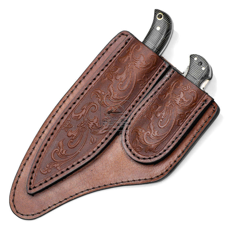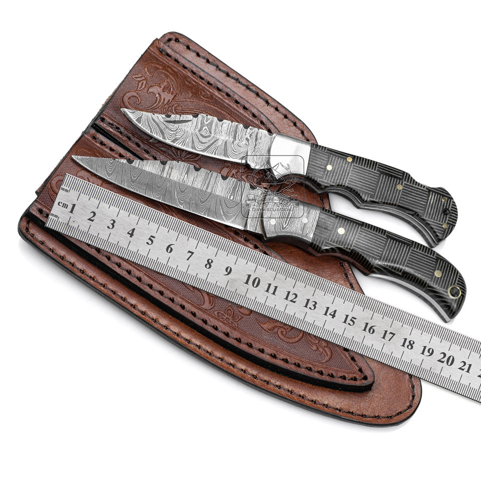 Custom Damascus Steel Knife Set Box Weave Micarta Handle Premium Leather Sheath Industrial Grade OEM DD-DUO-105 Outdoor Hunting