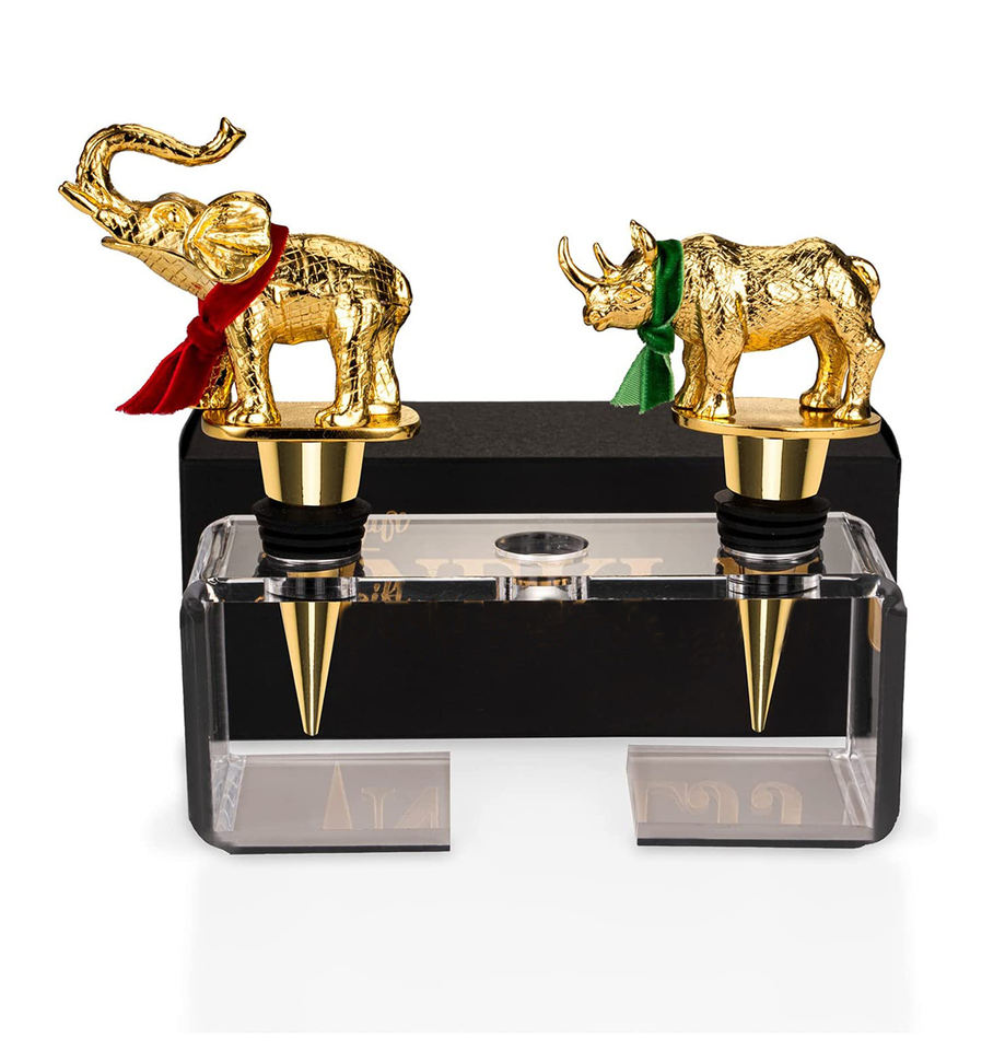 Custom Decorative Metal Gold Elephant Wine Accessories Bottle Stopper for Gift Rhino Wine Stoppers Set