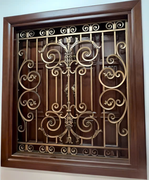 Custom Modern Decorative Polished Wrought Iron Window Frame for Villa House Exterior Security Metal Grill Design EURO IRON DOOR