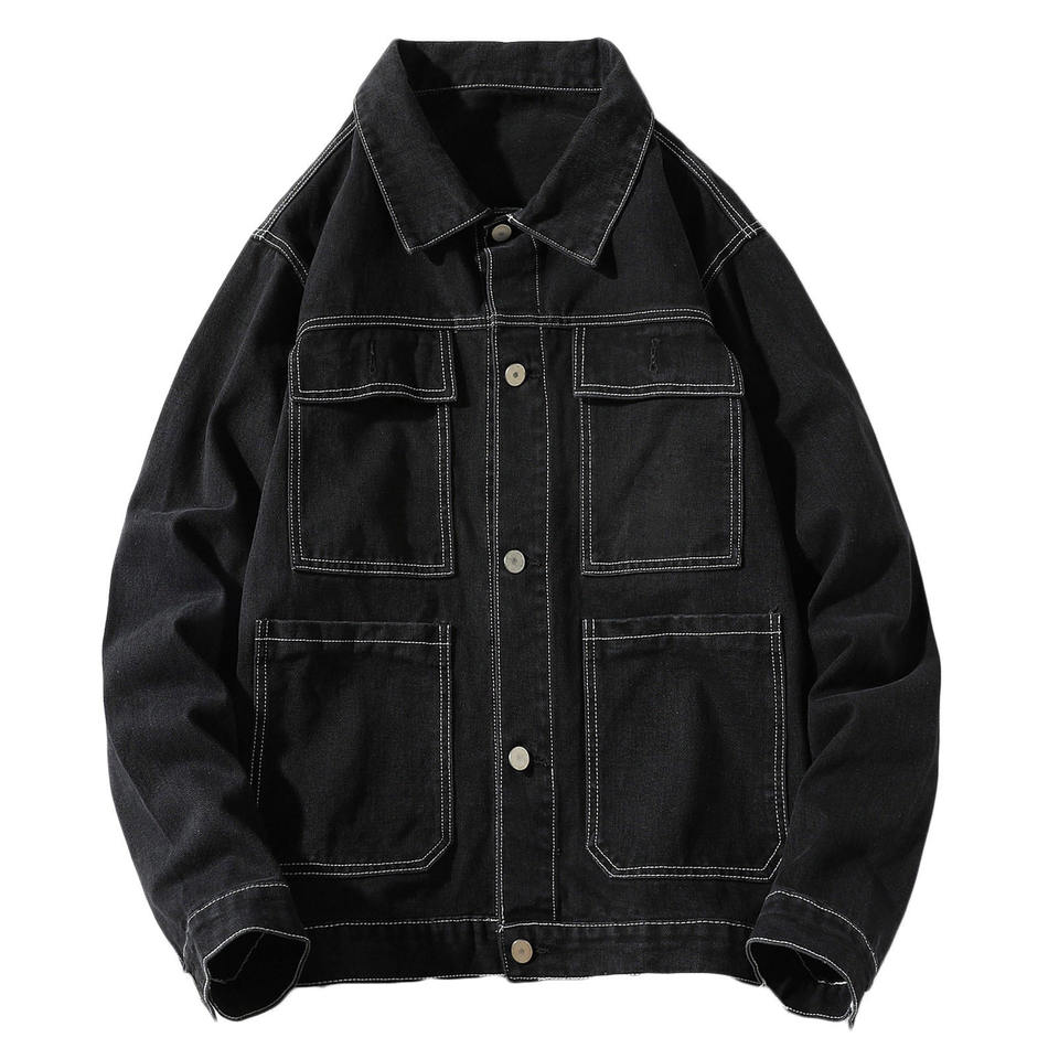 Custom Denim Jacket For Men Black And Blue Design Custom Acid Wash Street Style Jeans Outerwear Denim Jacket Men 2025