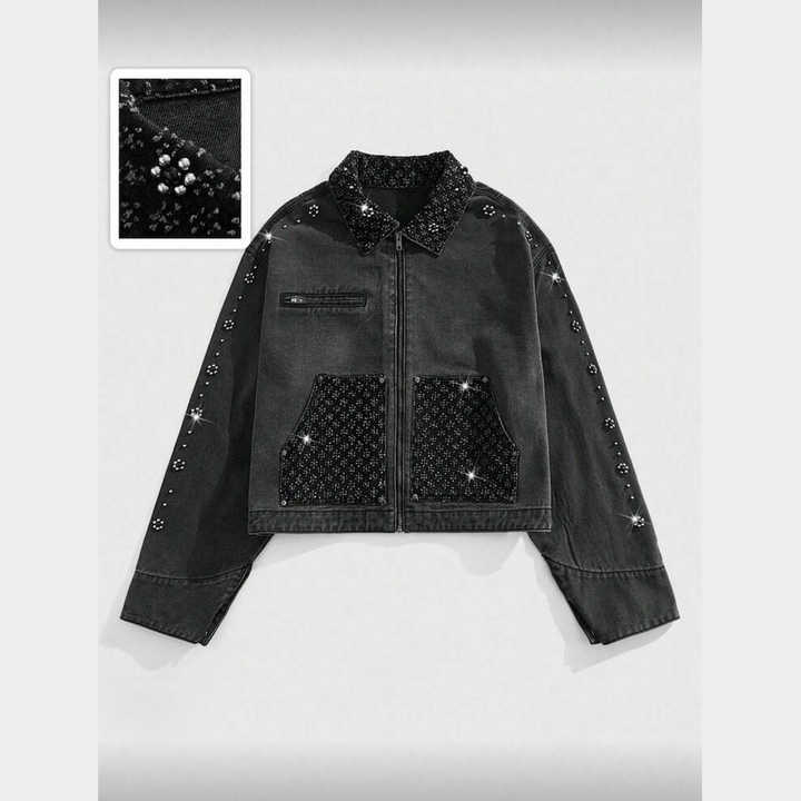 Custom Denim Jackets with Embroidery on All Over Denim Jacket for Women Floral Embroidery Women's Denim Jackets Custom logo