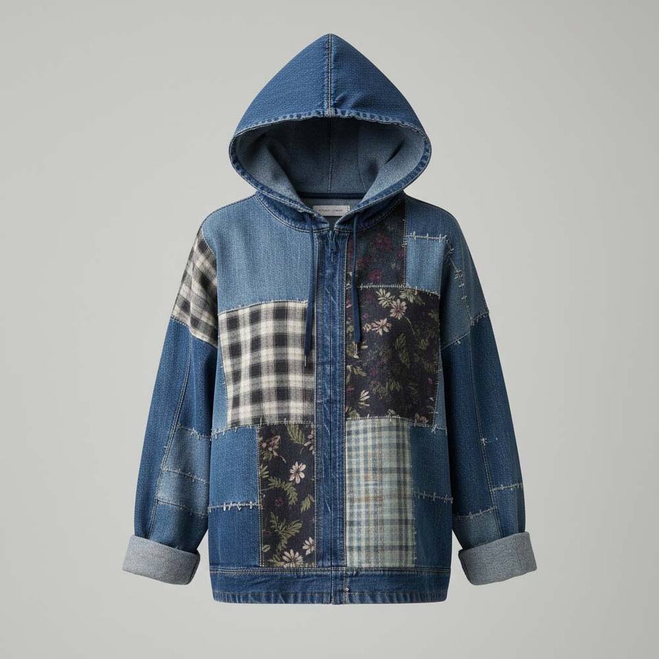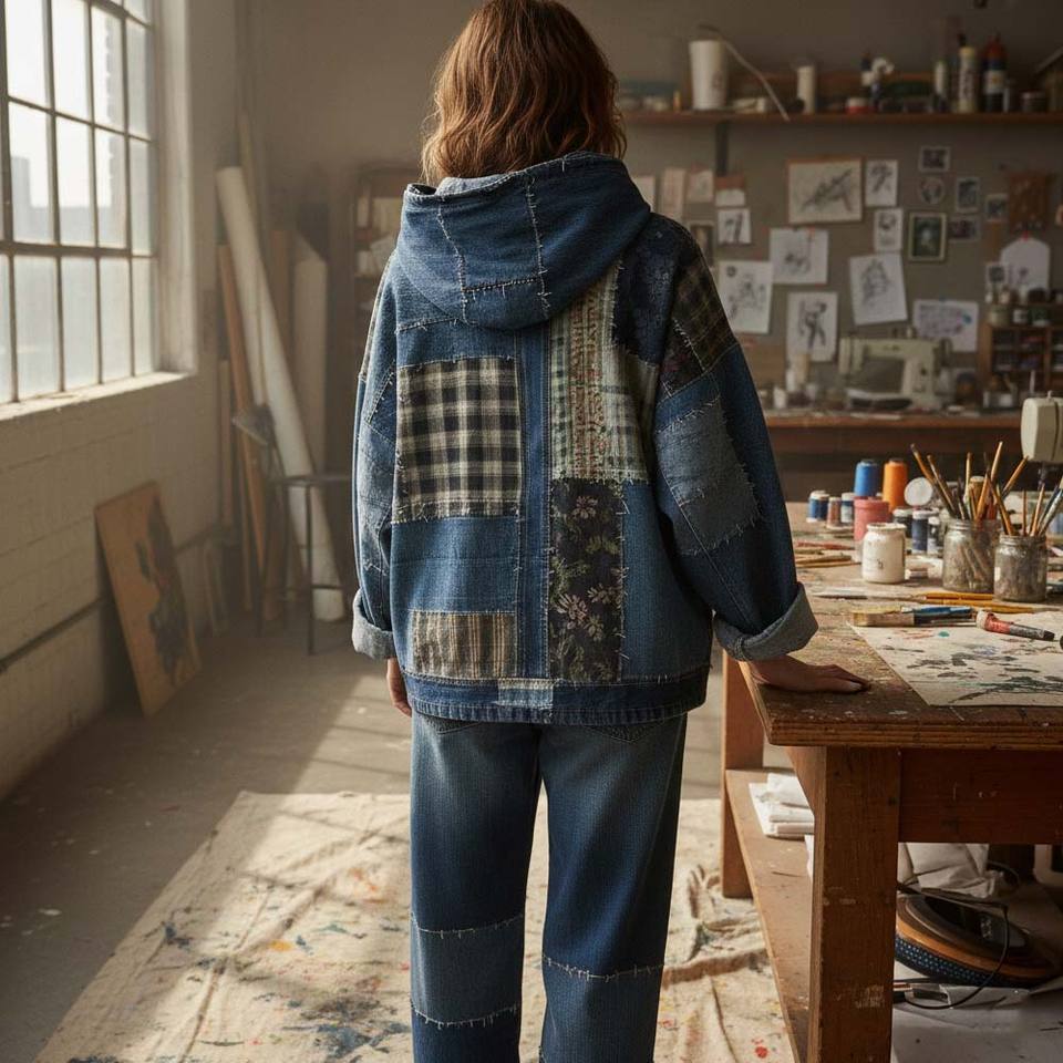 Custom Denim Women's Oversized Vintage Style Cotton Sweatshirt Autumn Winter