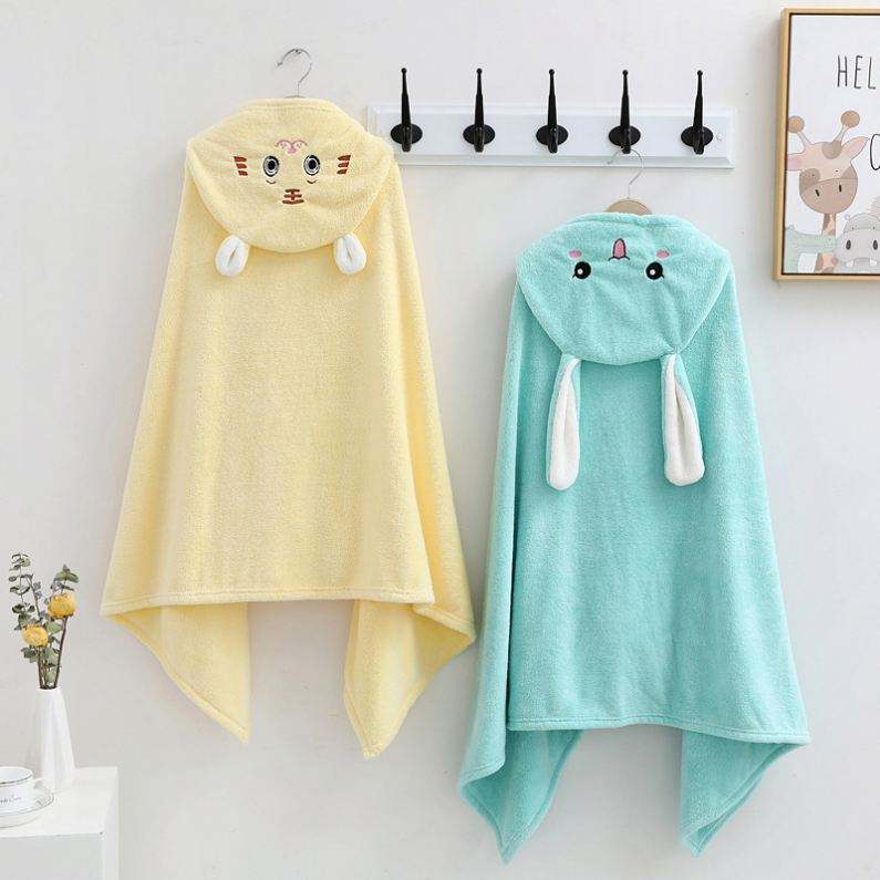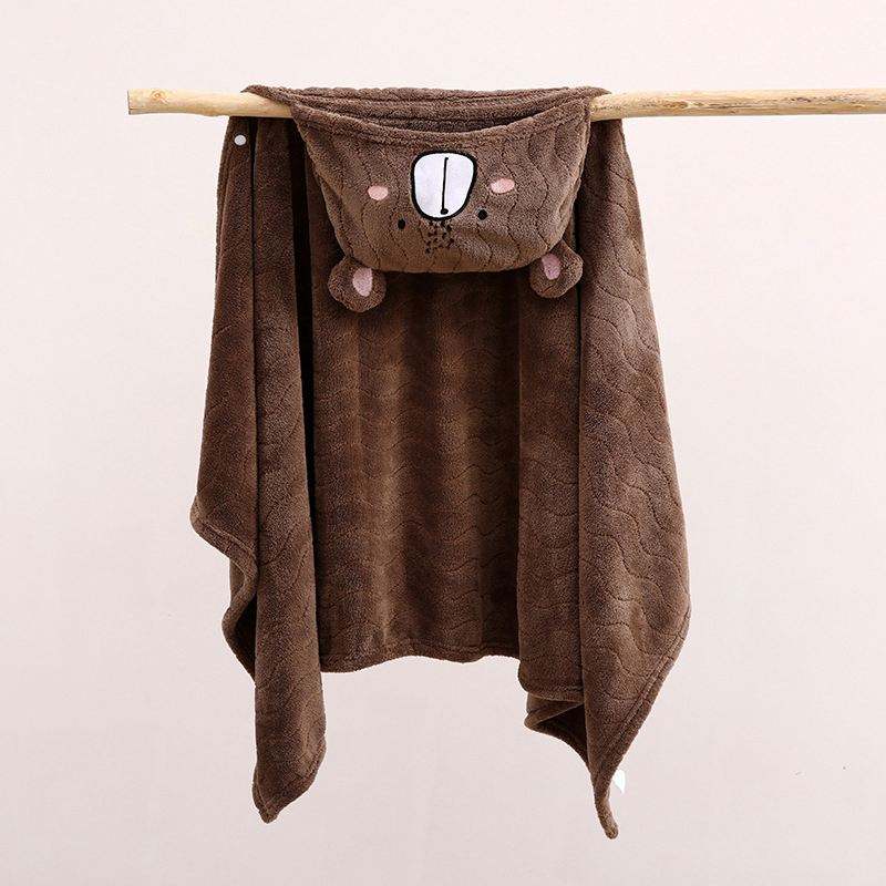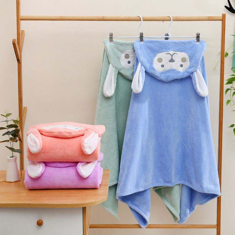 Custom Design 100*160cm Super Soft Velvet Baby Bath Hooded Swaddle Blanket Breathable Square Cartoon Pattern for Bedroom Hotel