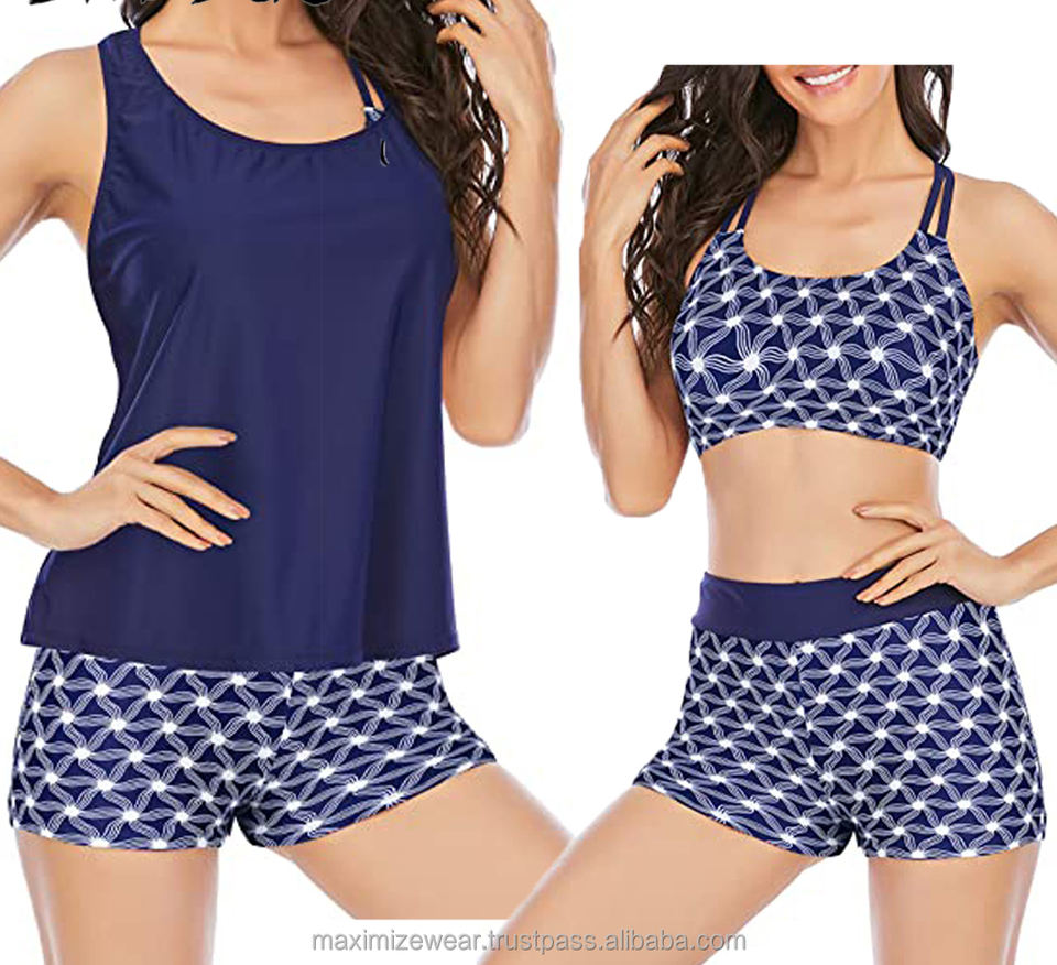 Custom Design 3 Piece Swimsuits for Women Athletic Tankini Teen Bathing Suit Tummy Control Swim Clothing
