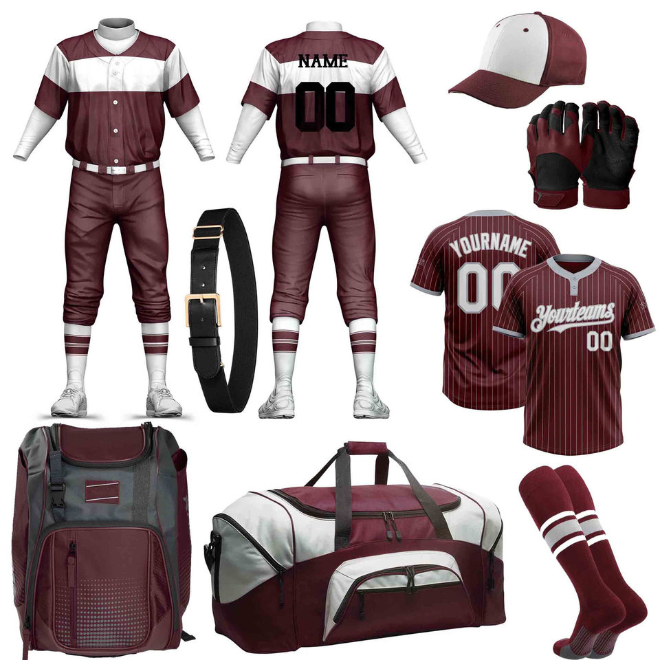 Custom Design Baseball Uniform Sets Maroon And White Color Adult Team Softball Uniform Kits With Custom Team Name And Number