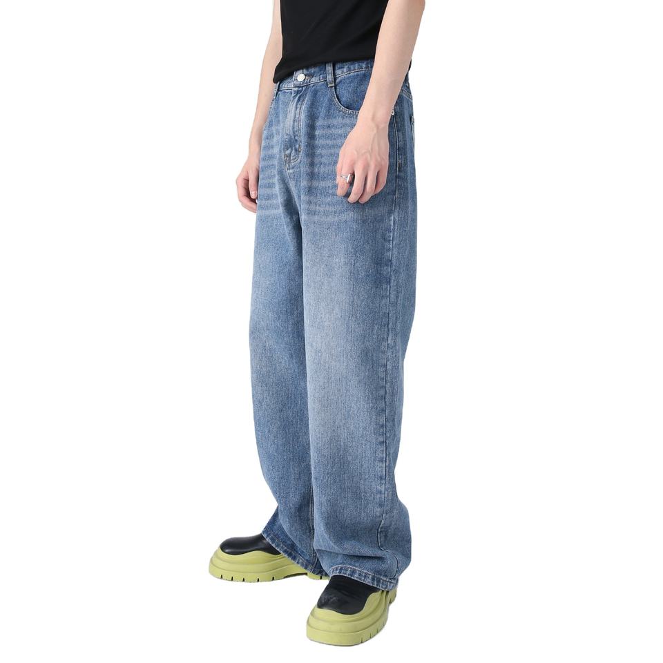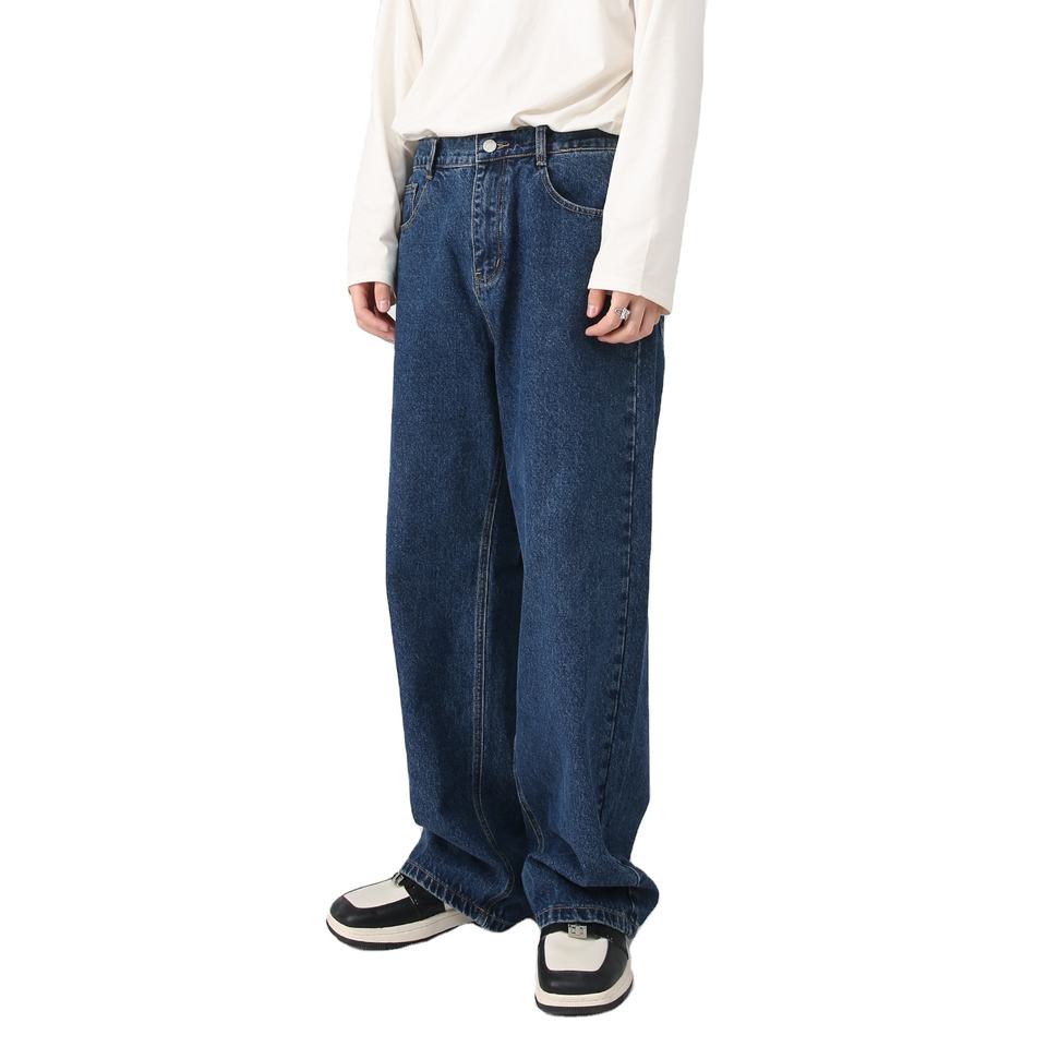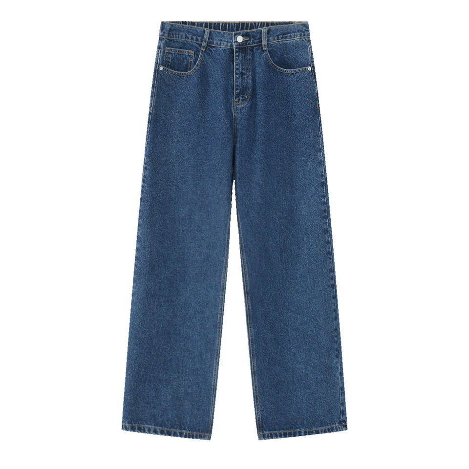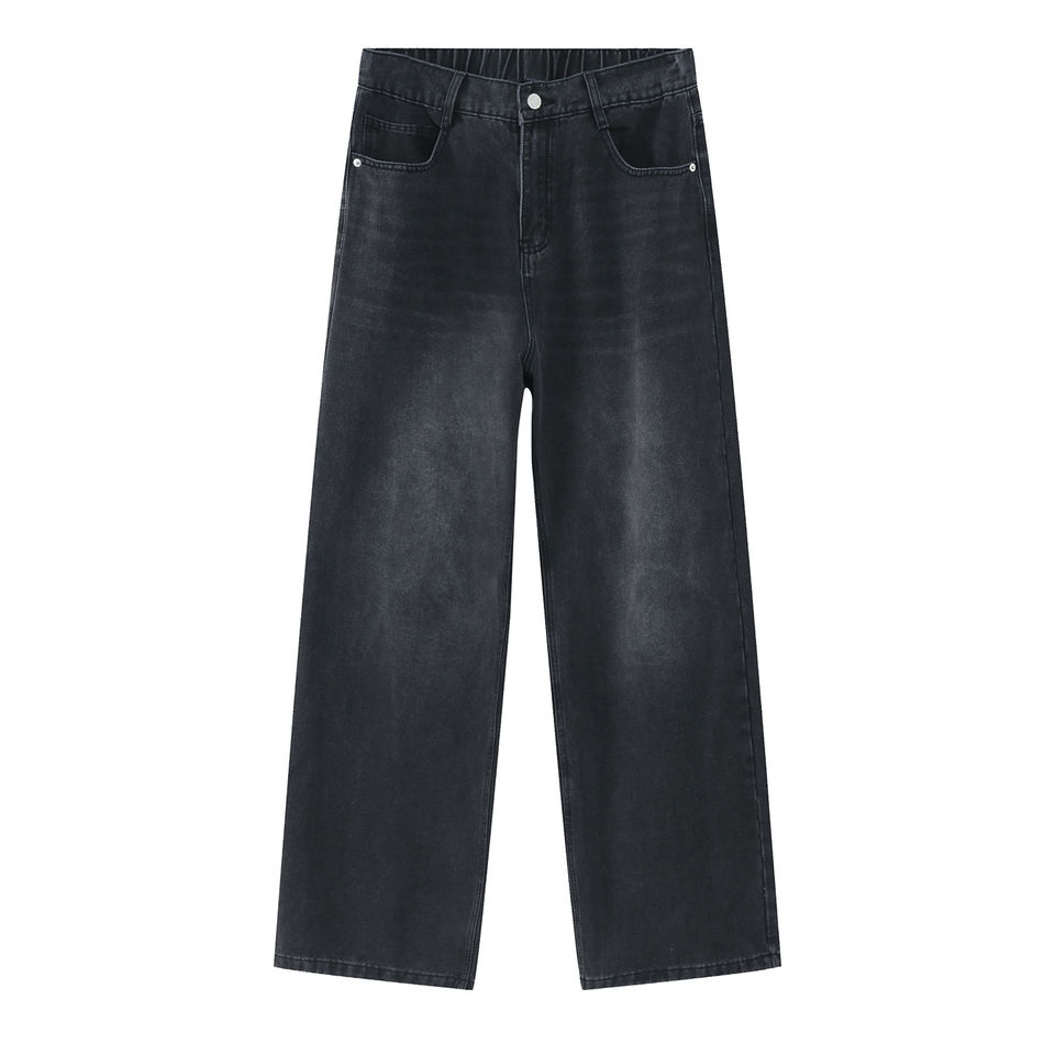 Custom Design Basic Size Casual Denim Trousers Loose Half Elastic Waist Loose Denim Pants Straight Leg Jeans for Man