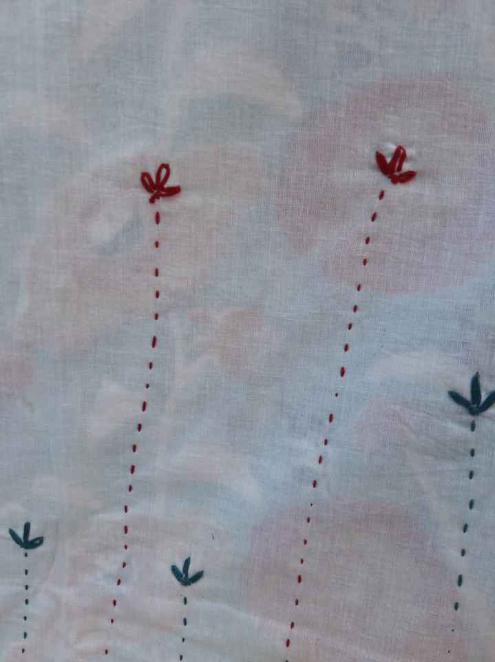 Floral Printed Fabric With Handmade Embroidery Sheet