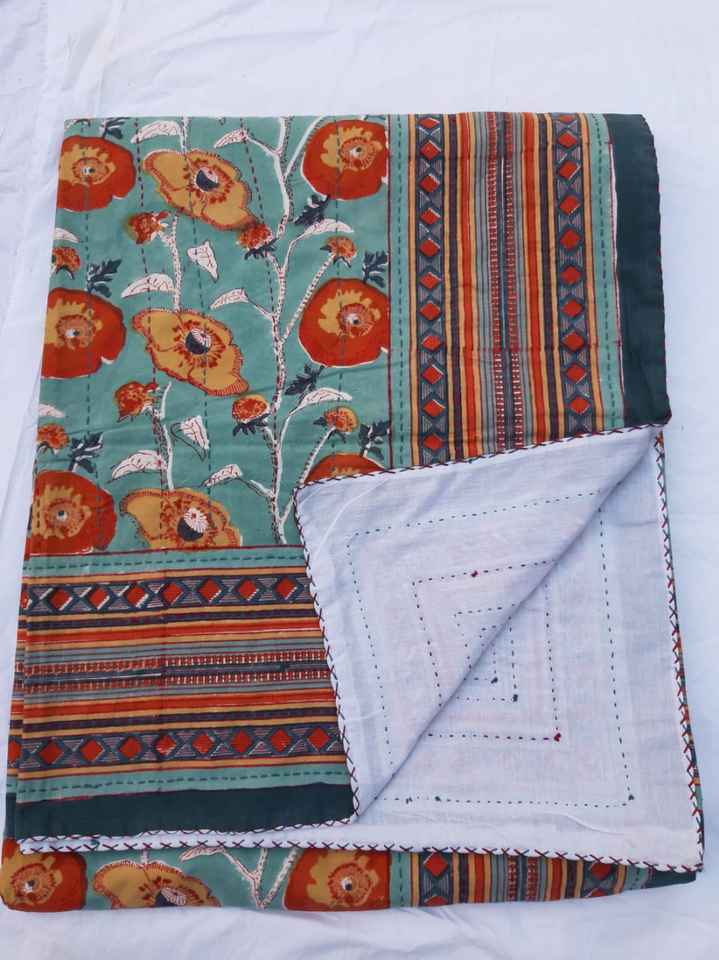Beautiful Hand Block Printed Cotton Fabric Bed Cover