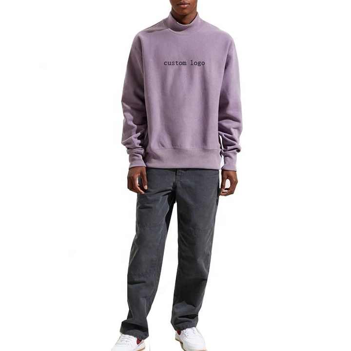Custom Design Branded Homme Men's Turtle Neck Long Sleeves Troja Acid Wash Genser Purple Custom Embroidered Pullover Svitcemizo