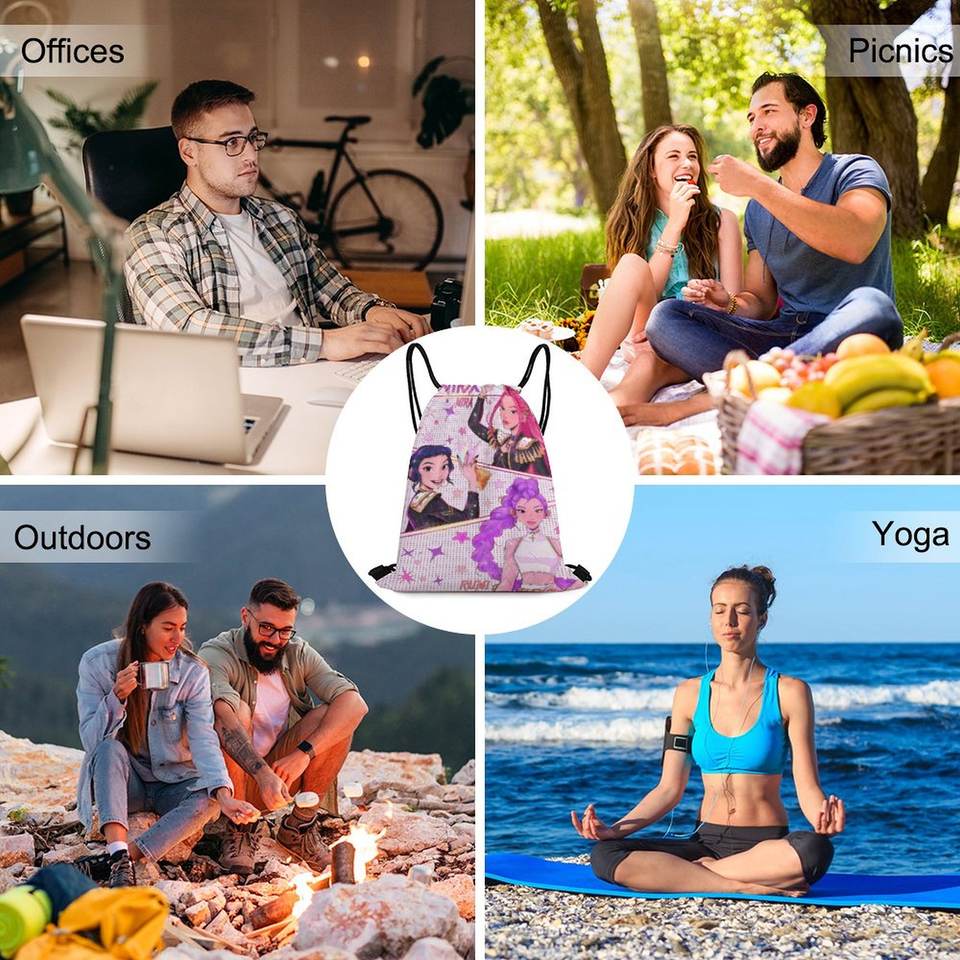 Custom Design Cartoon Kpop Demon Hunters Drawstring Bag Unisex Foldable Portable Cotton Drawstring Backpack Tote Bags
