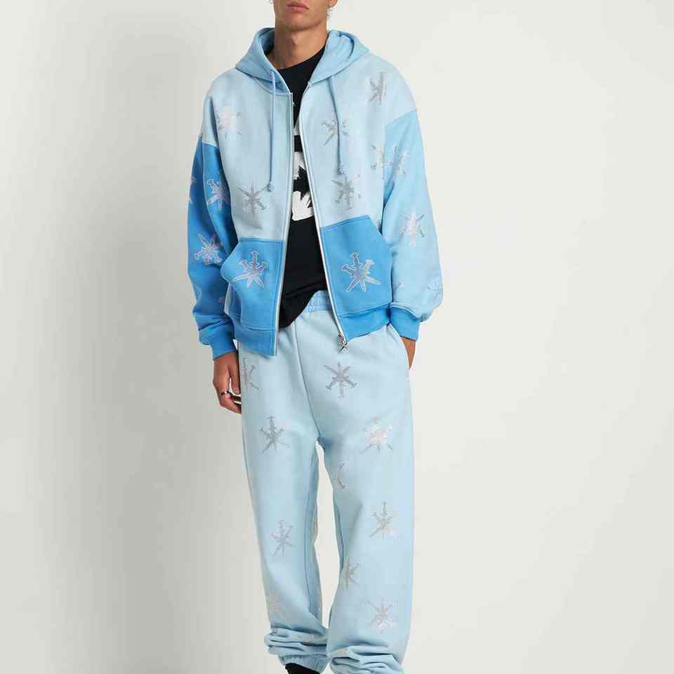 Custom Design Cotton Polyester Made Rhinestone Hoodies Basics Cotton Blended Top Quality Full Pullover Men Rhinestone Hoodies