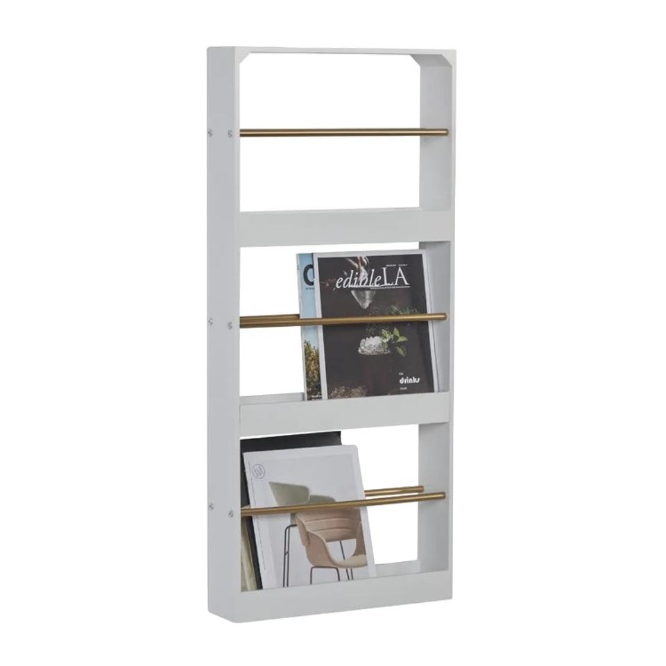 Custom Design Craftsman Tall Wooden Wall Magazine Shelf with Matte White Fished for Home and Office Wall Decor Books Organizer.