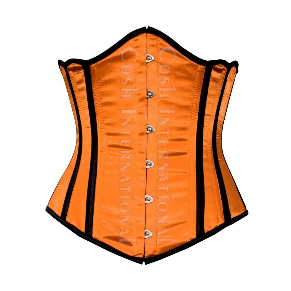 Custom Design Curvy Underbust Steelboned Orange Satin Waist Training Corset With Black Trim