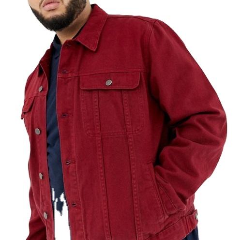 Custom Design Denim Jackets Winter Heavy Weight Warm Jean Jackets Wholesale Street Wear Fashion Breathable Denim Jacket Red Dyed