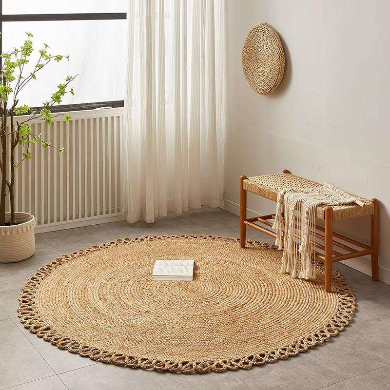 Custom Design Eco Braided Jute Rug – Handmade Natural Fiber Carpet for Retail and Home Decor Stores