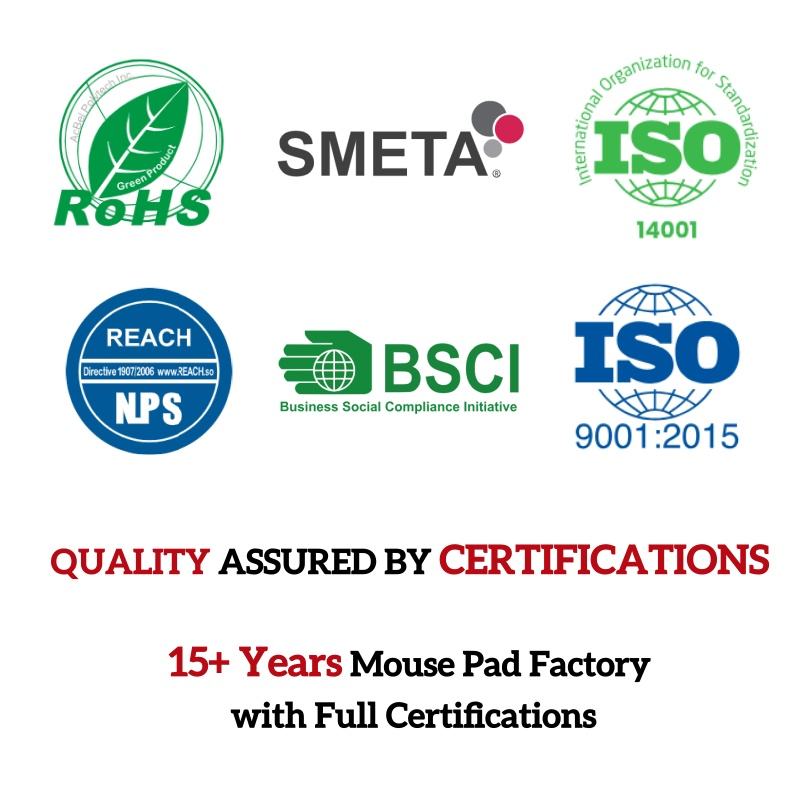 RoHS/Reach/CA65/PAHs/Sedex 4P/ISO9001/ISO 14001/BSCI/etc.