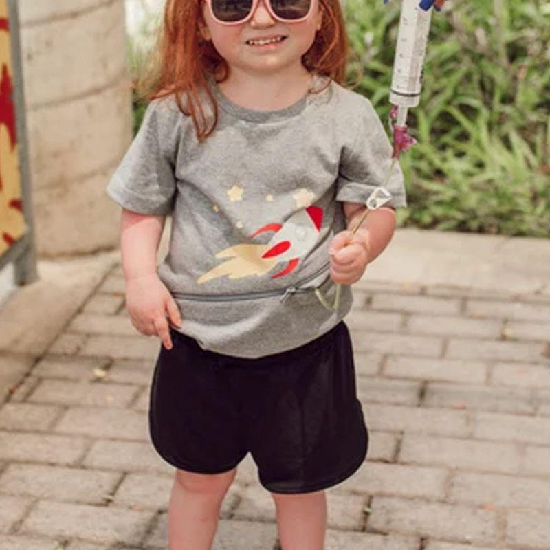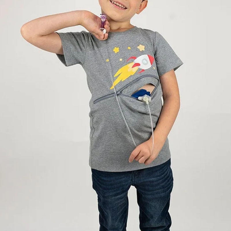 Custom Design Gray Spaceship G-Tube Zip Shirt Tummy Access Tee Diagonal Abdominal Zipper T-shirt, Kids Tubie Shirt For Unisex