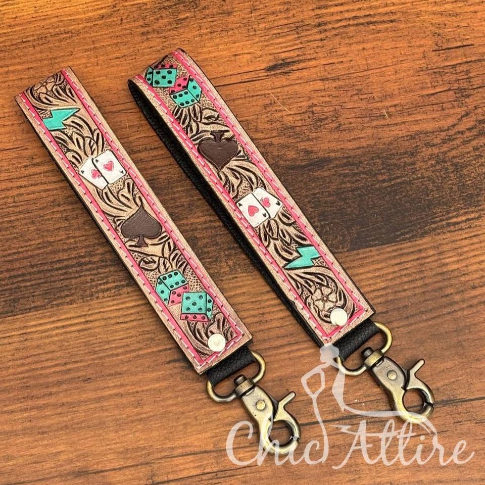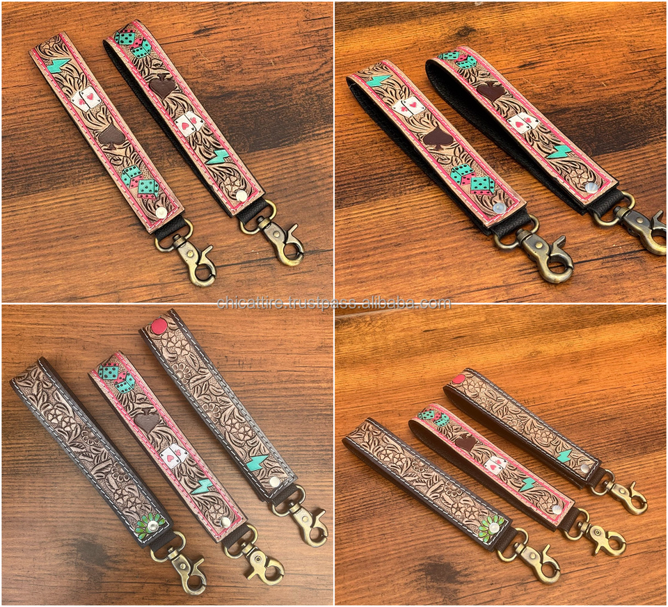 Product name:Hand Tooled Leather Lanyard Wristlet Keychain
