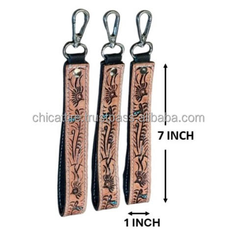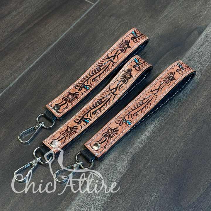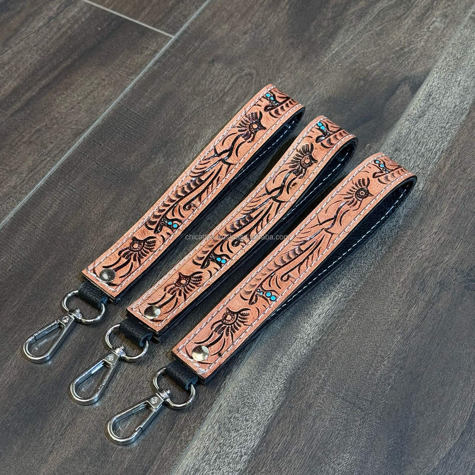 Custom Design Hand Tooled Leather Wristlet Keychain Genuine Cowhide Leather Personalized Key Fob-Cowgirl Car Lanyard Keychain