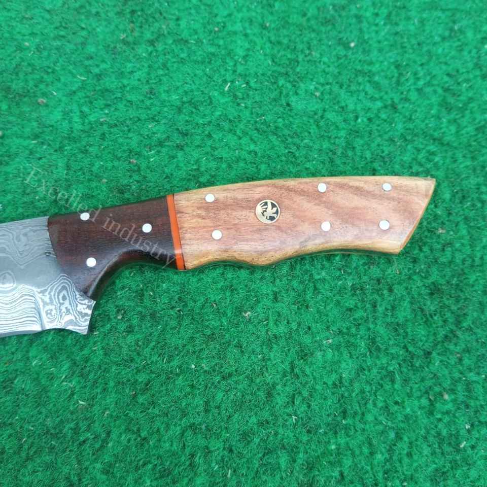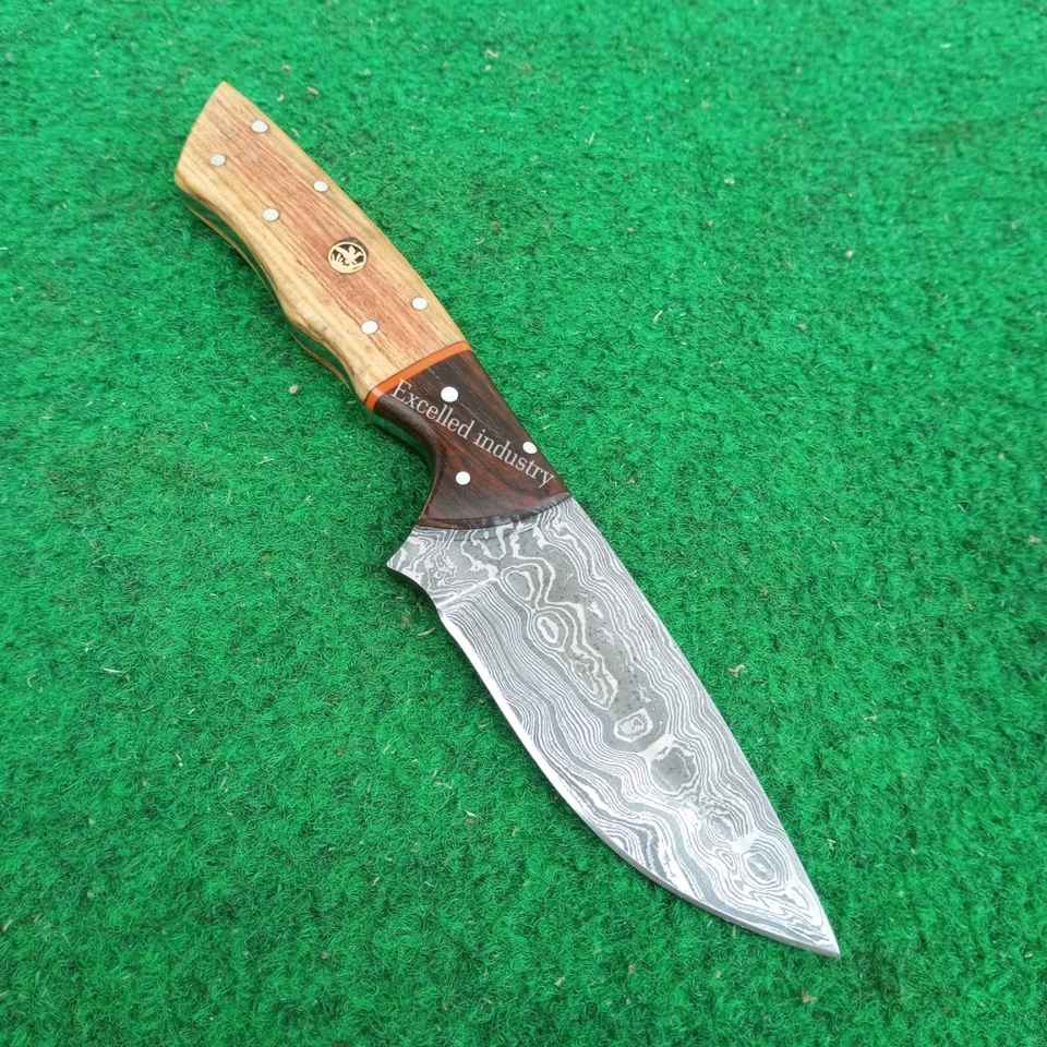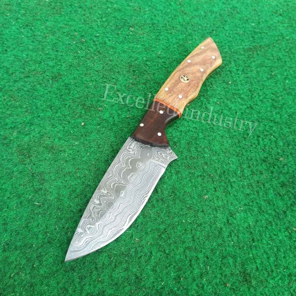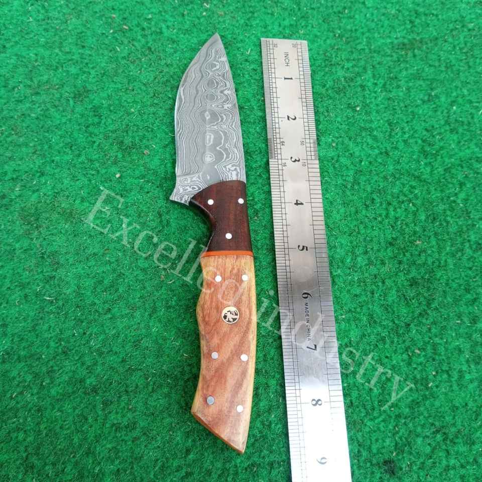 Custom Design Handmade Damascus Steel Hunting Skinner Fixed Blade Knife Wooden Handle With Free Leather Sheath