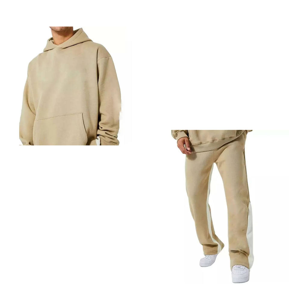 Custom Design Heavy Cotton Flared Sweatsuit Embroidered Logo Raw Hem Hoodie Jogger Tracksuit Set Plus Size Options Available