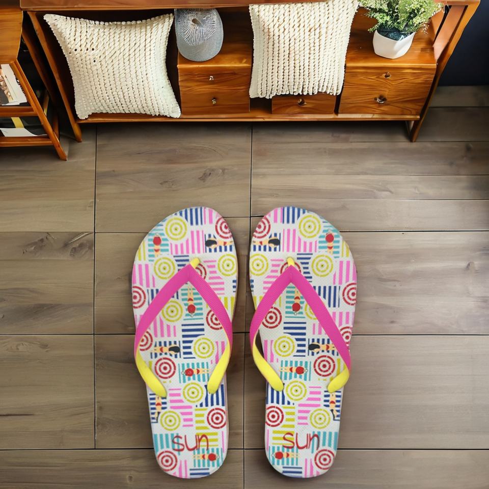Custom Design Ladies Flip Flops Pink Yellow Layered Sole Beach Sandals Non Slip Casual Summer Slippers