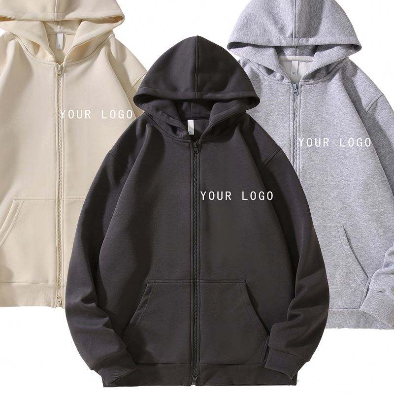 Autumn Sporty High Quality Casual Loose Zipper Hoodies Custom Logo Cotton Puff Printing Hooded Pullover Life Jacket