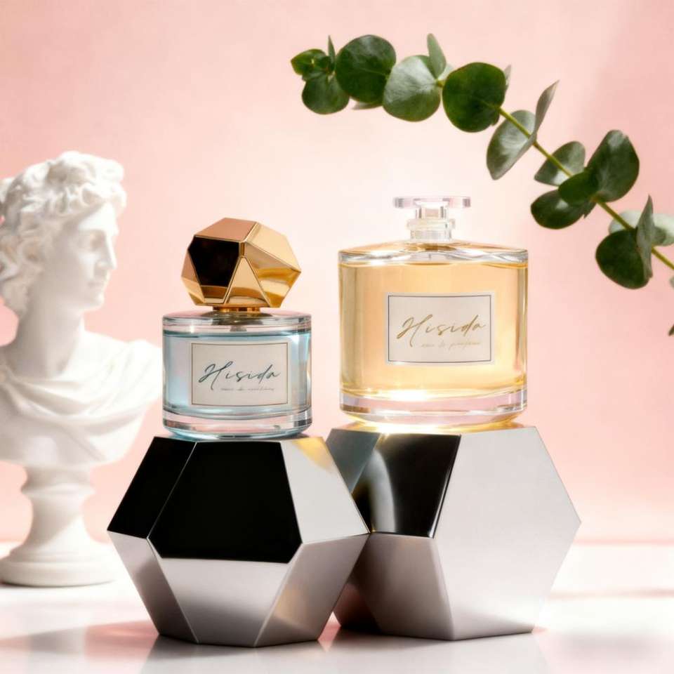 Custom Design Luxury Clear Round Gold Cap Glass Perfume Bottle 30ml 50ml 100ml Empty Spray Perfume Bottle with Box Packaging
