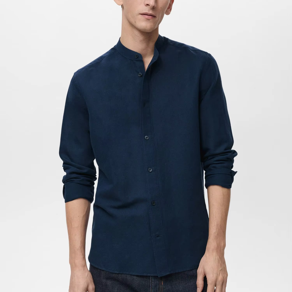 Custom Design Men's 100% French Linen Collarless 1/2 Button Shirt Breathable Casual Style Smart Casual Summer Season Plain Dyed