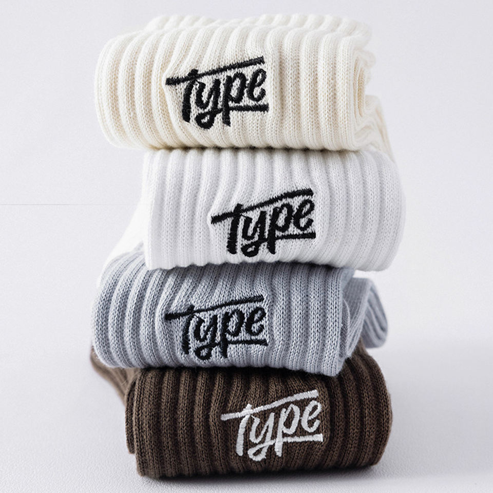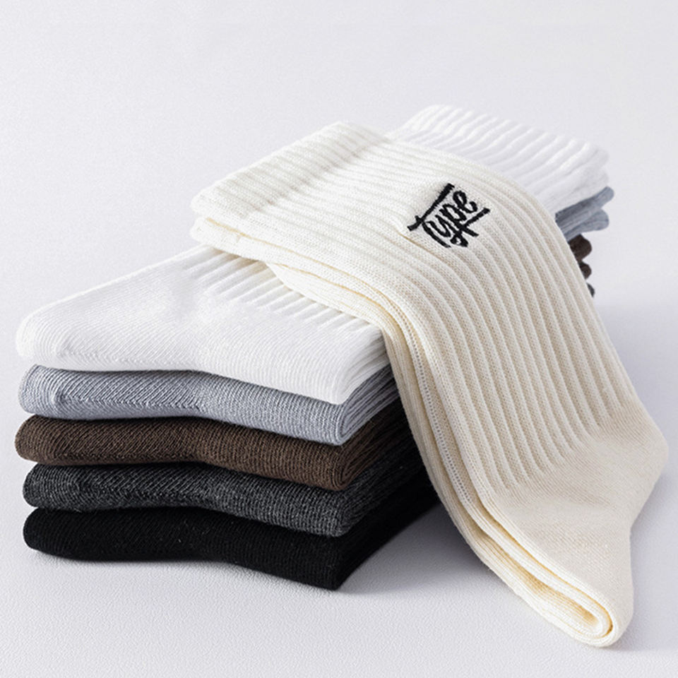 Custom Design Men's Black White Knitting Crew Socks Embroidery Letter Cute Mid Tube Winter Sports Basketball Socks With Logo