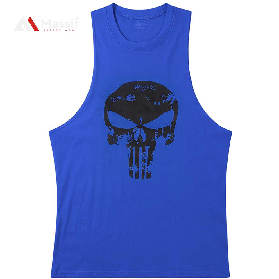 Custom Design Men's Gym Workout Tank Top Singlet Spandex Fitness Singlet with Button Decoration Casual Washed Style