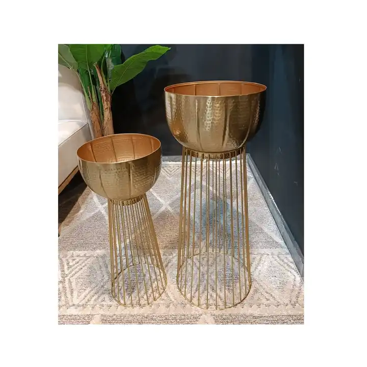 Custom Design Metal Floor Tall Indoor Plant Stand Flower Stands for Living Room Bedroom Display Plant Stand With Planter Pot S/2