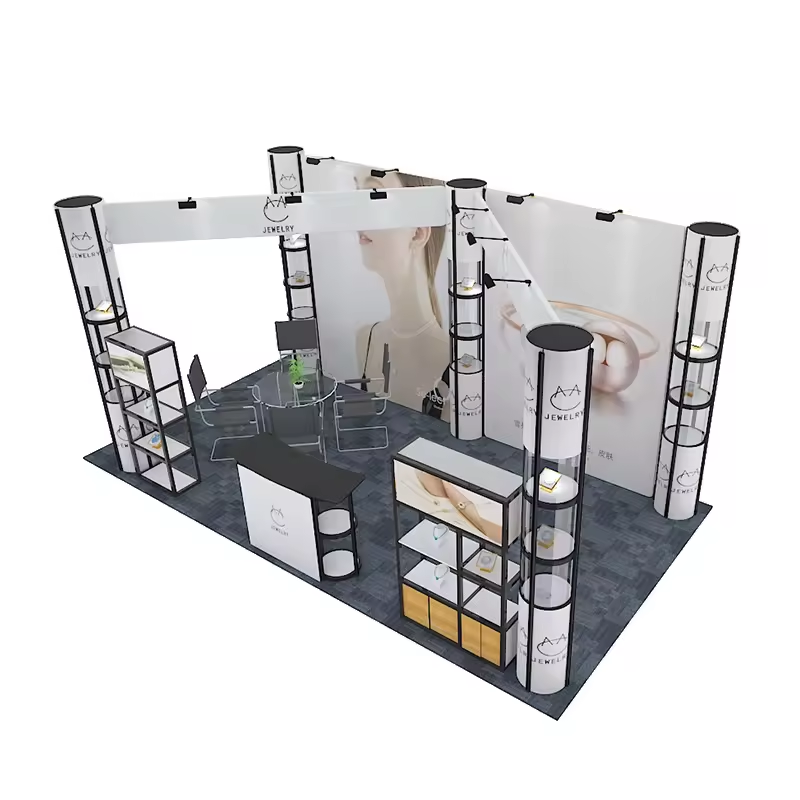 Custom Design Modular Aluminum Tube 10x10 Tension Fabric Portable Exhibit Foldable Spiral Tower Promotion Table Exhibition Booth