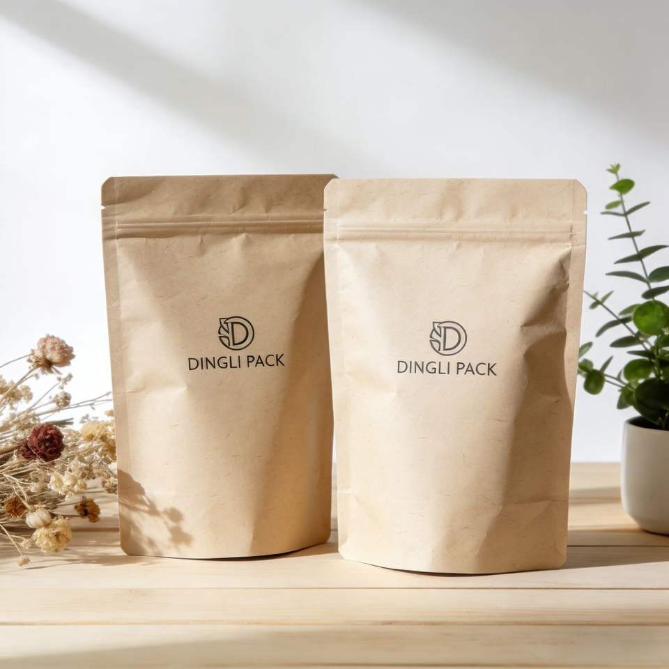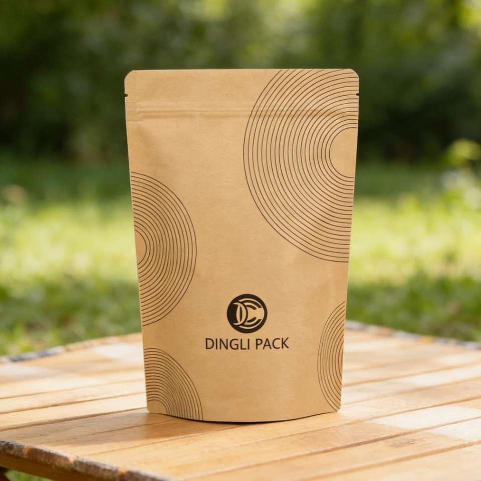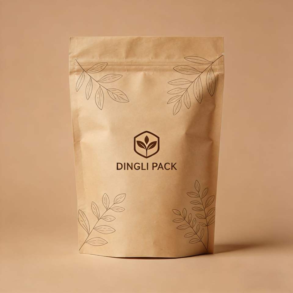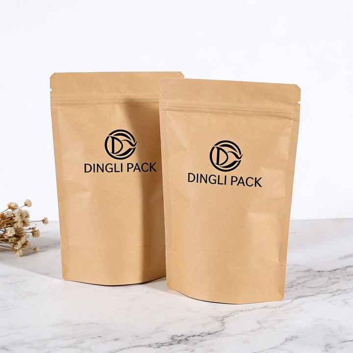 Custom Design Moisture Proof Kraft Paper Bag Plastic Stand up Zipper for Nuts and Snacks Powder Packaging