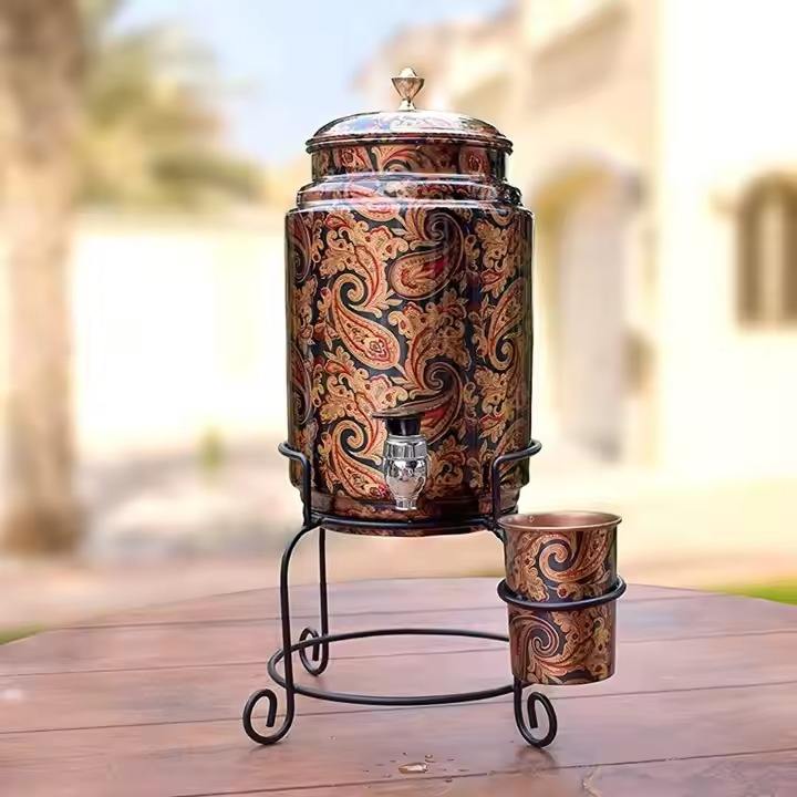 Custom Design Printed Copper Water Container Natural Handicraft Water Dispenser for Home and Hotel Use at Export Price