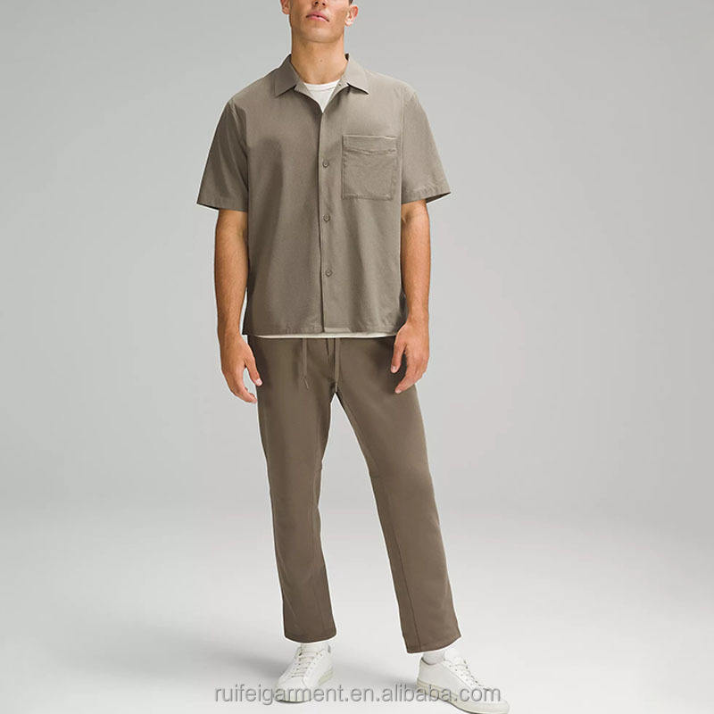 Custom Design Anti-Wrinkle Breathable Quick Drying Summer Casual Beach Oversized Short Sleeve Chest Pocket V-neck Button 100%