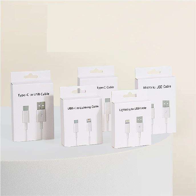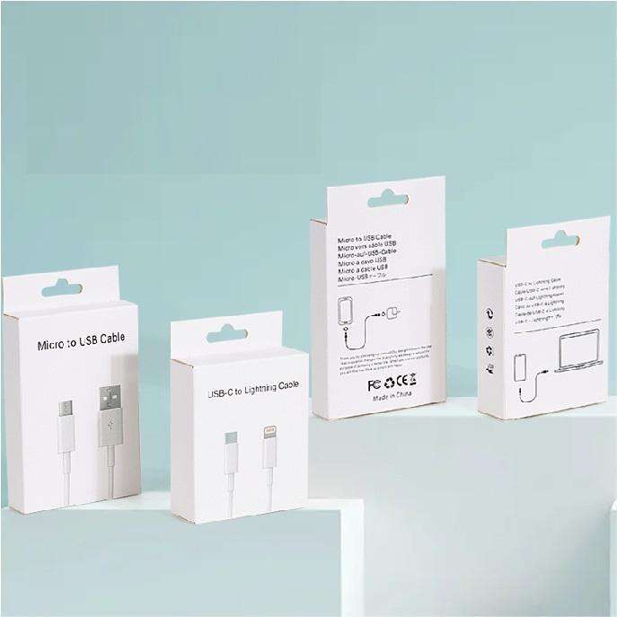 Custom Design Recyclable Paper Box with Clear Printing for Phone Charging Cable Micro B USB-C