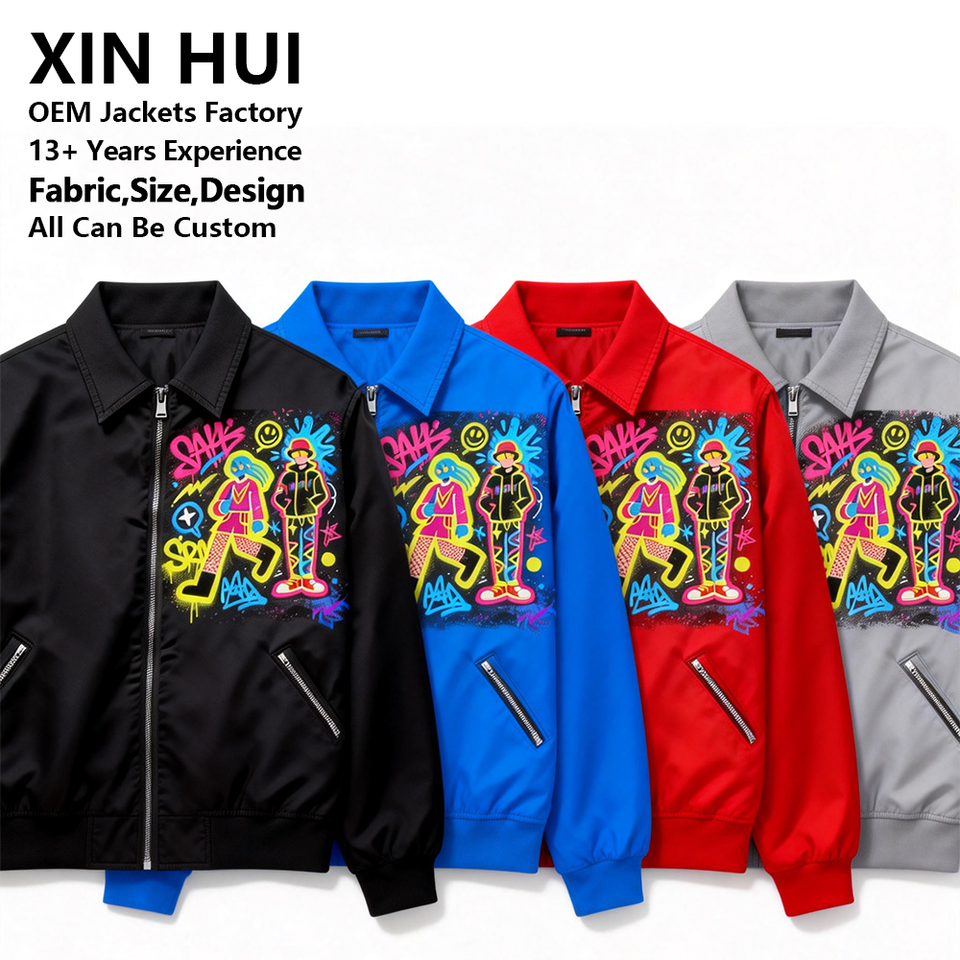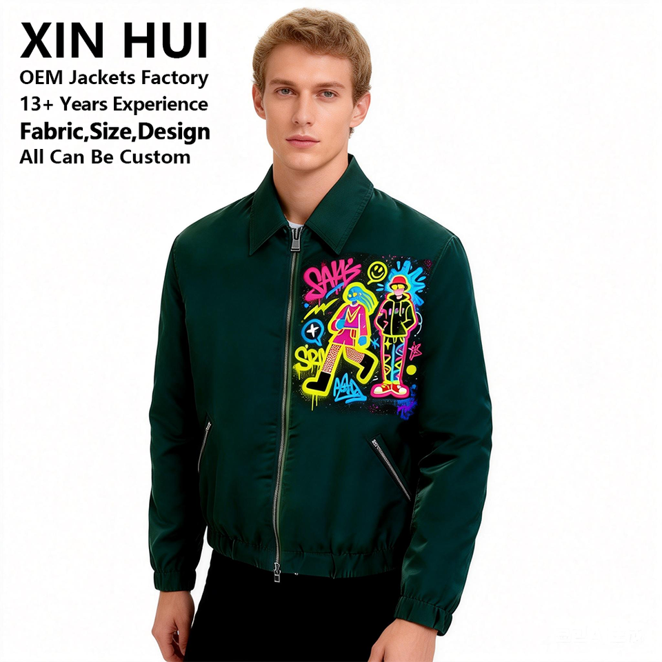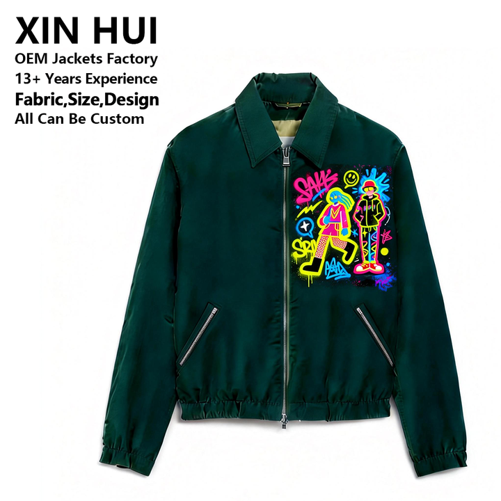 Custom Design PU Leather Winter Bomber Jacket Men Women Streetwear Graffiti Print Dark Green Zipper OEM Service Wholesale