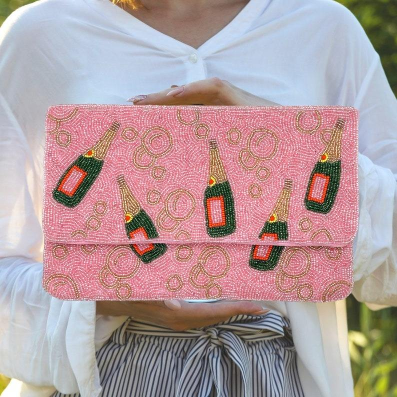 Custom Design Seed Beads Embroidered Handmade Classic Style Handbags with Mixed Colors Pattern Digital Printing for Promotion