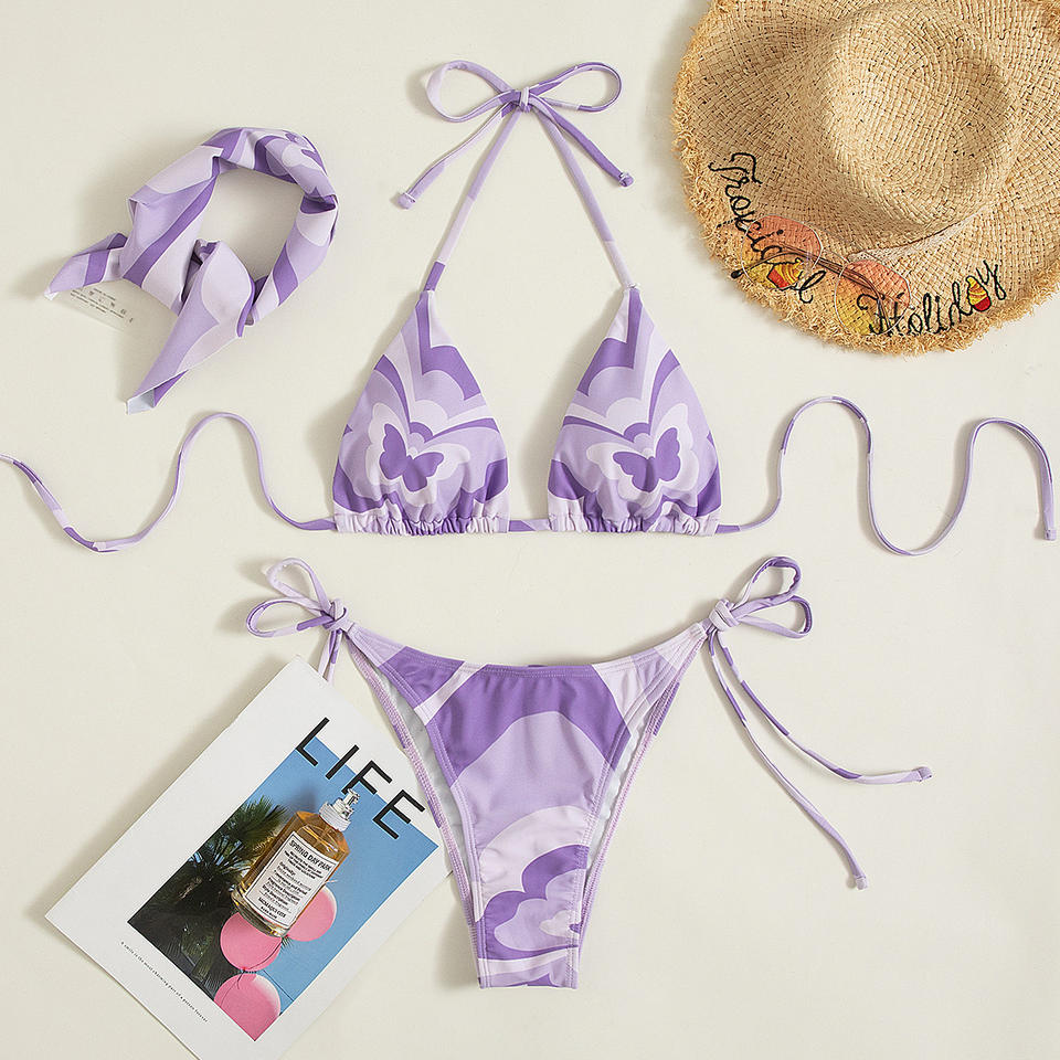 Custom Design Sexy printed style 3 Piece Swimwear Women String Bikini Set with Scarf Beachwear