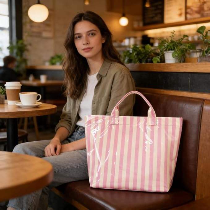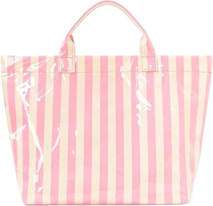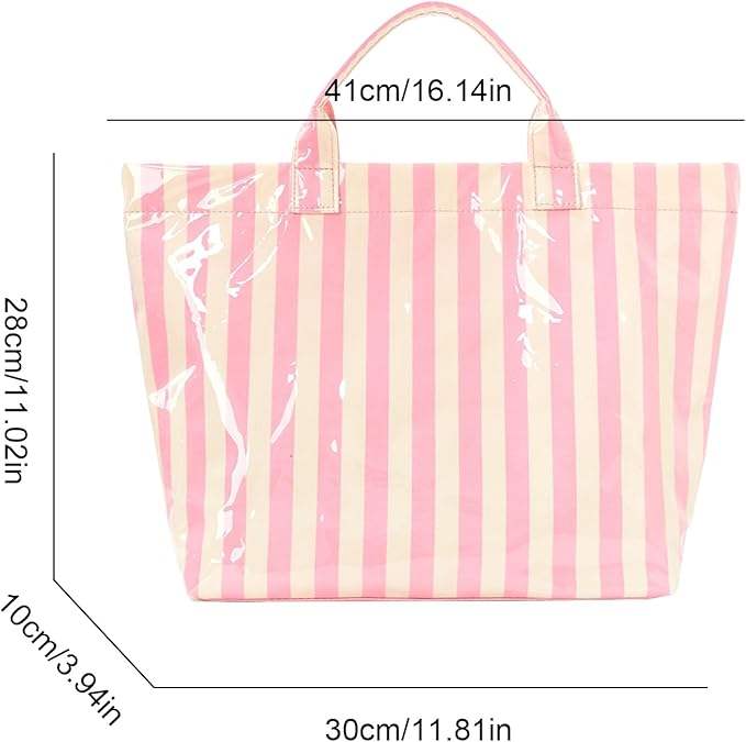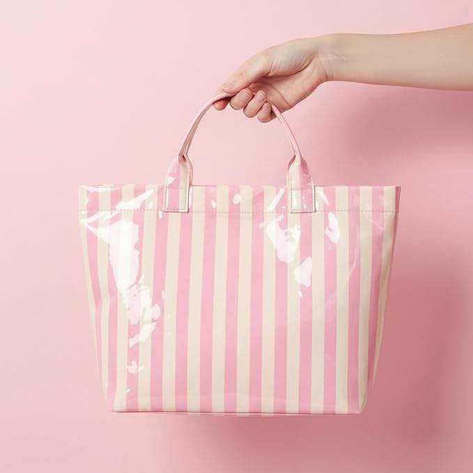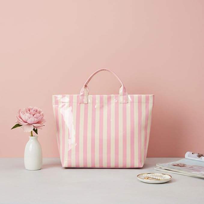 Custom Design Striped Glossy PVC Coating Tote Bag Waterproof Top Handle Shopping Bag Plastic Tote Handbag Beach Travel Work