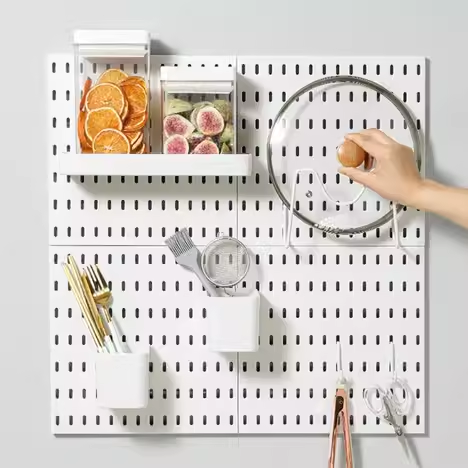 Custom Design White Acrylic Pegboard Secondary Storage Bag Holder for Kitchen and Bathroom