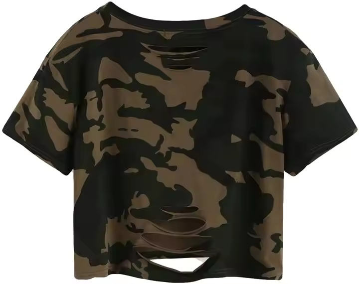 Custom Design Women Short Sleeve Distressed Crop T-shirt Summer Tops Camouflage Printed Cropped Top