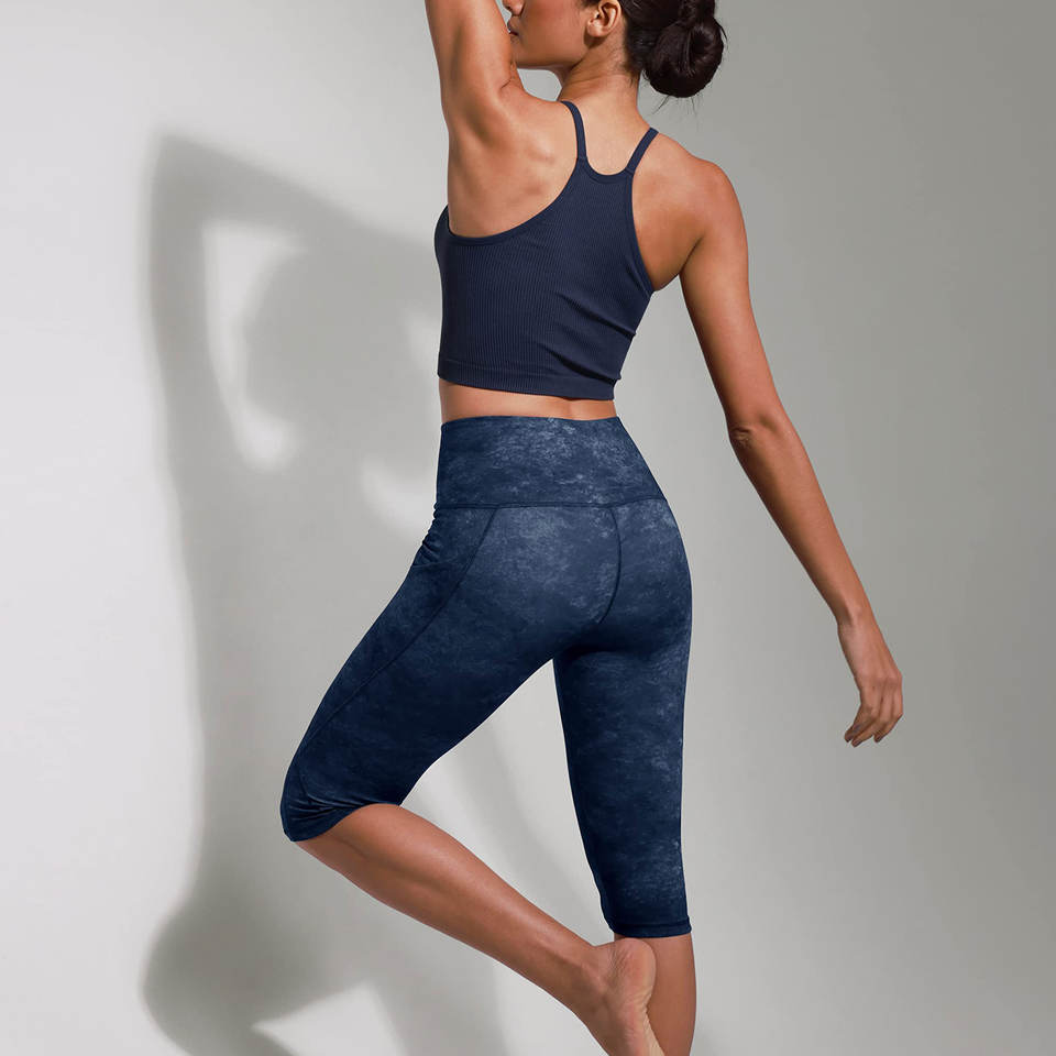 Women's Custom Designed 3/4 Length Capri Yoga Pant Sublimation Printed Elastic Waist Closure Flexible Buttery Soft Leggings