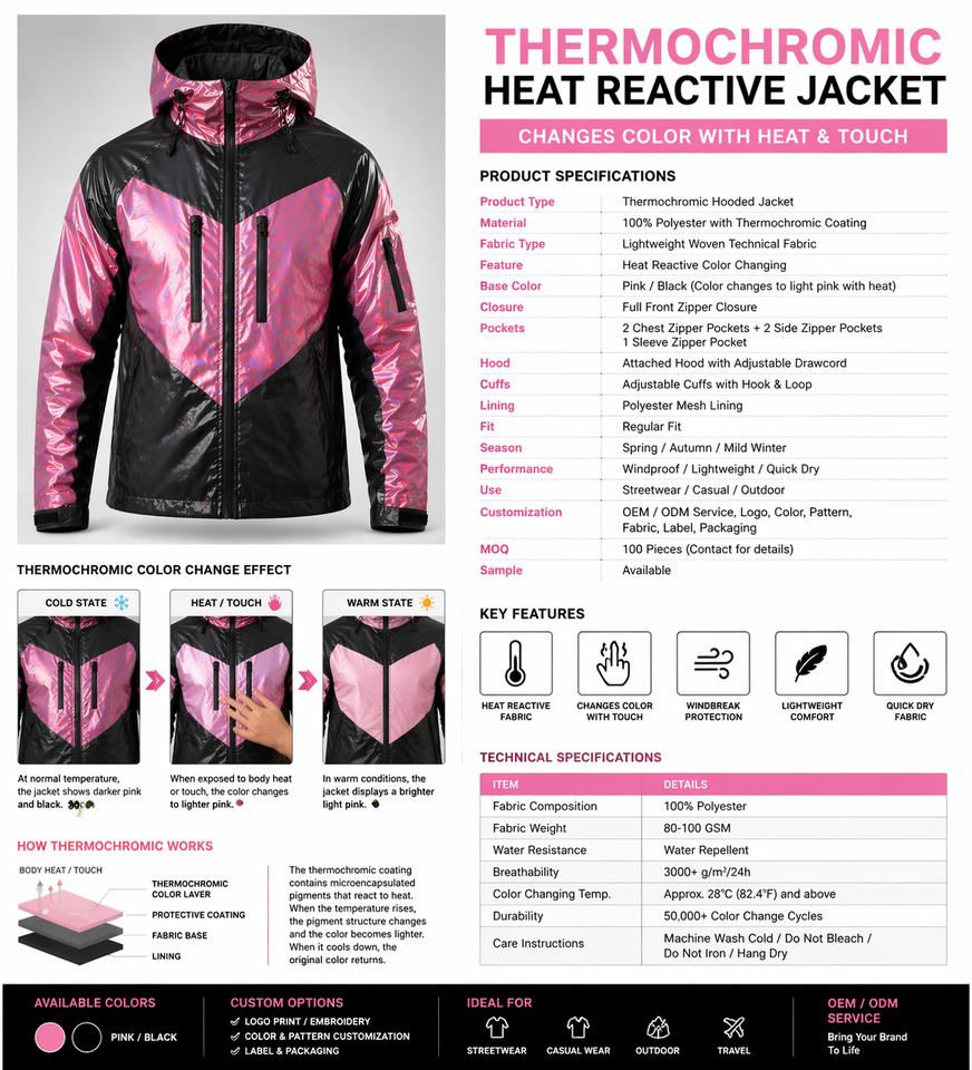 Custom Design Zip up Heat Reactive Fabric Heat Reactive Jacket Windbreaker Coat Green Heat Reactive jacket for men OEM Supplier