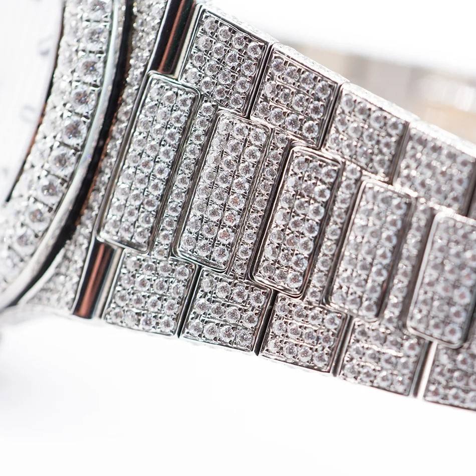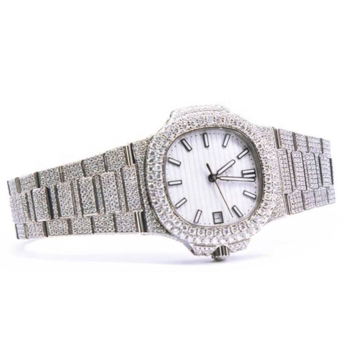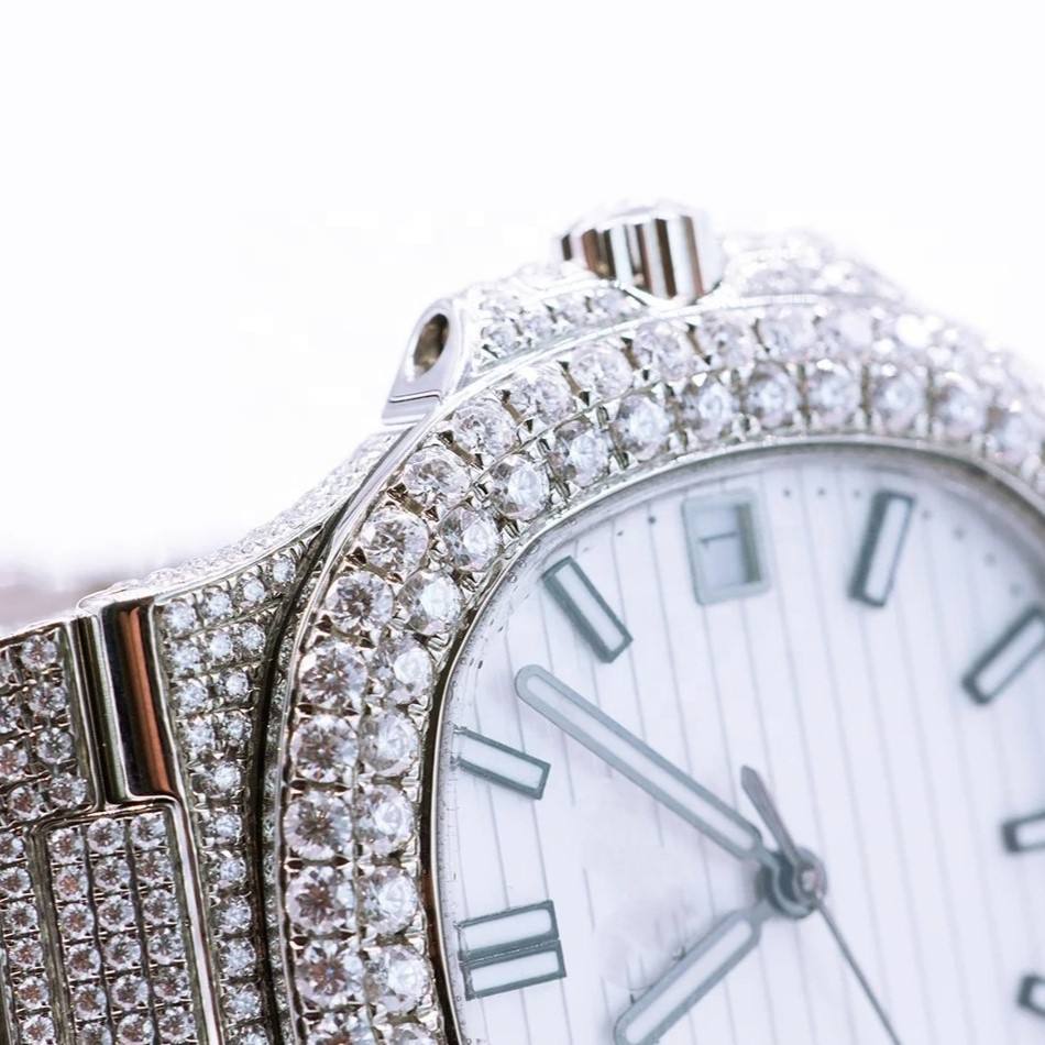 Custom Design and Logo Luxurious Studded Analog Stainless Steel IcedOut VVS Clarity Full Moissanite Diamond Hip Hop Wrist Watch