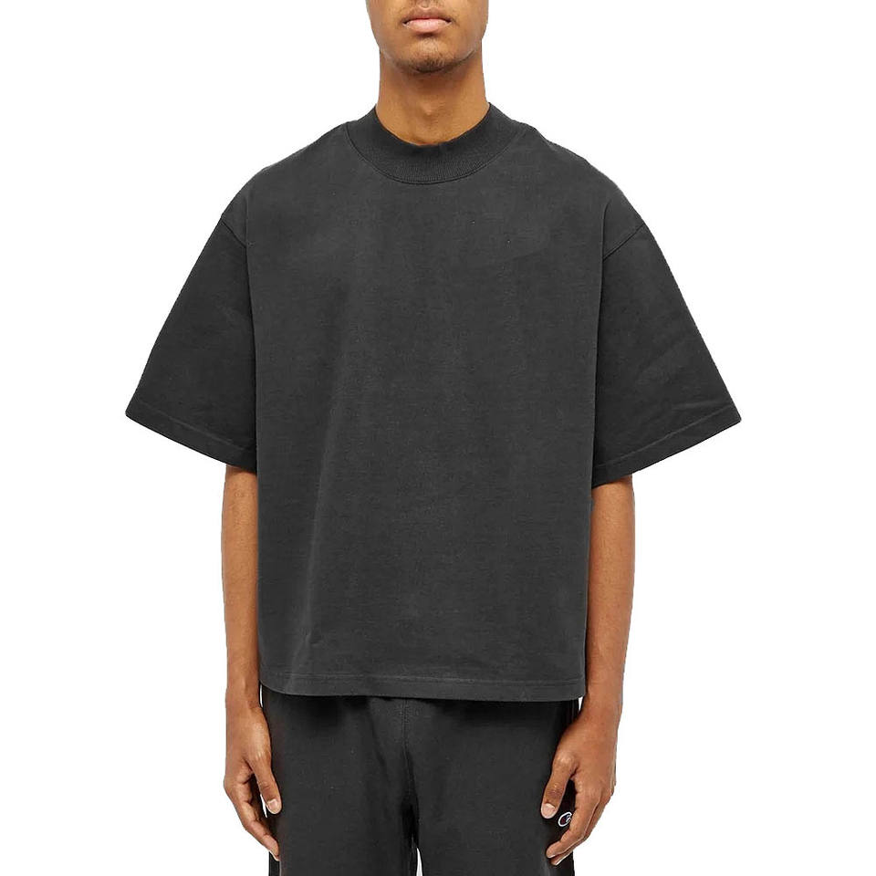 Custom Design logo Mens Washed Short Sleeve Ribbed Mock Neck Black Oversized T-shirts